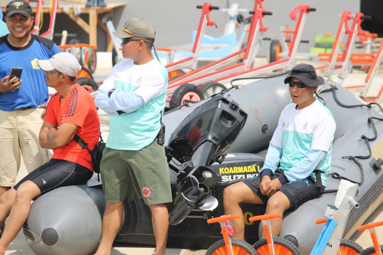 Three days of sunshine and breeze were followed by cloud cover passing through Jakarta, which forced a morning postponement.