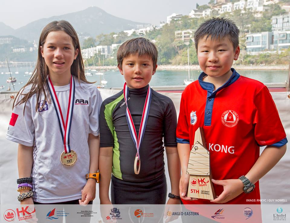 With the racing abandoned for the day, the results from yesterday stood and in the Optimist fleet Hong Kong’s Duncan Gregor took the win for the second year running. Training has paid off for fellow Hong Konger Douglas Leung who was only 2 points behind – a great improvement to finish second overall compared to his 18th position in the same event last year. Douglas was interviewed today, “This is my fifth Hong Kong Race Week. I have been sailing Optimists for six years now and this is one of my best results. I have earned a lot of experience from overseas events for example the Europeans in Bulgaria and the Top of the Gulf Regatta in Thailand. This has helped me adapt to any wind conditions. I think that going out today would have be very nice because I could see how everyone has progressed over the years. HKRW been good because I can learn from the experience.”
